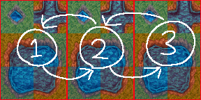水オートタイル制作メモ 2026/01/01 メモ RPGツクールでアニメーションオートタイル(A1)を自作している人はご存じかもしれませんが、水のフルオートタイルは横に並んだ3パターンを右から1→2→3→2→1……の順で繰り返し表示されます。歩行キャラクターのグラフィックと同様に、2番目(中心)の画像を反復しています。 しかし、滝用のオートタイルは縦に並んだ3パターンを上から1→2→3→1→2→3……の順で繰り返し表示される仕様で、2番目(中心)の画像は反復しません。フルオートタイルのノリで滝用アニメーションを作成すると変になるので、気を付けましょう(1敗)。こんなのどこにも書いてないから自分で検証するしかないじゃん!タイルセット自作する人を想定していないのかな(はい)。 以下に画像あり READ MORE